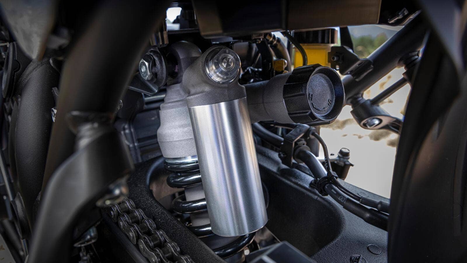 Nejnovější odolné ocelové šasi Ténéré 700 je robustní, vylepšené a navržené tak, aby nabízelo kontrolovanou a příjemnou jízdu v nejrůznějších prostředích. Nastavitelný vysoký podvozek a velká drátěná kola přispívají k vysoké světlé výšce a dominantní jízdní pozici, která se projeví na silnici i v terénu, ať už zvolíte polohu vestoje nebo vsedě. Působivě lehká kapotáž byla navržena tak, aby vás ochránila před nejhoršími přírodními živly, zatímco komplexní 6,3" TFT přístrojový panel vám na první pohled poskytne všechny důležité informace, které potřebujete.